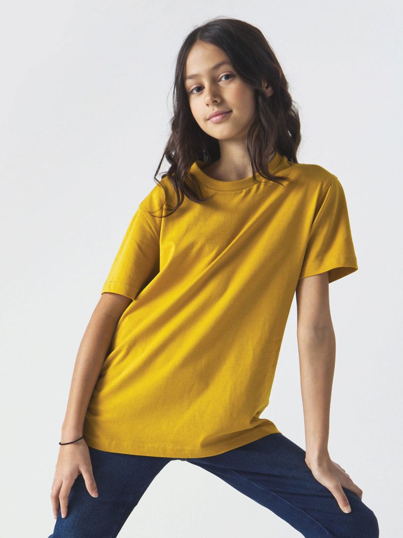 Ez a rövid ujjú, modern szabású gyerek póló ideális alapanyag minden olyan nyomdának és márkának, amely minőségi, jól nyomható textilt keres. A póló 100% organikus pamutból készül, és teljes felületen enzimmosott, ami nemcsak különleges puhaságot és prémium tapintást eredményez, hanem kiemelkedő nyomási felületet is biztosít.