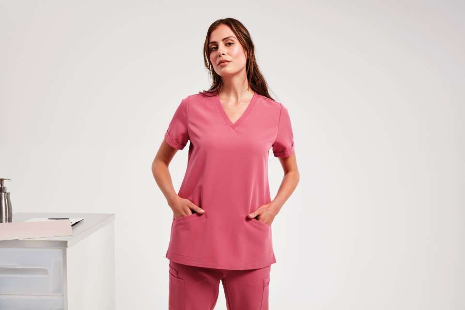 Rövid ujjú, V-nyakú, Zsebes